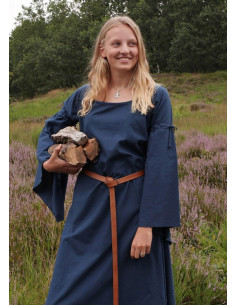 Abito medievale donna Burglinde blu maniche a tromba