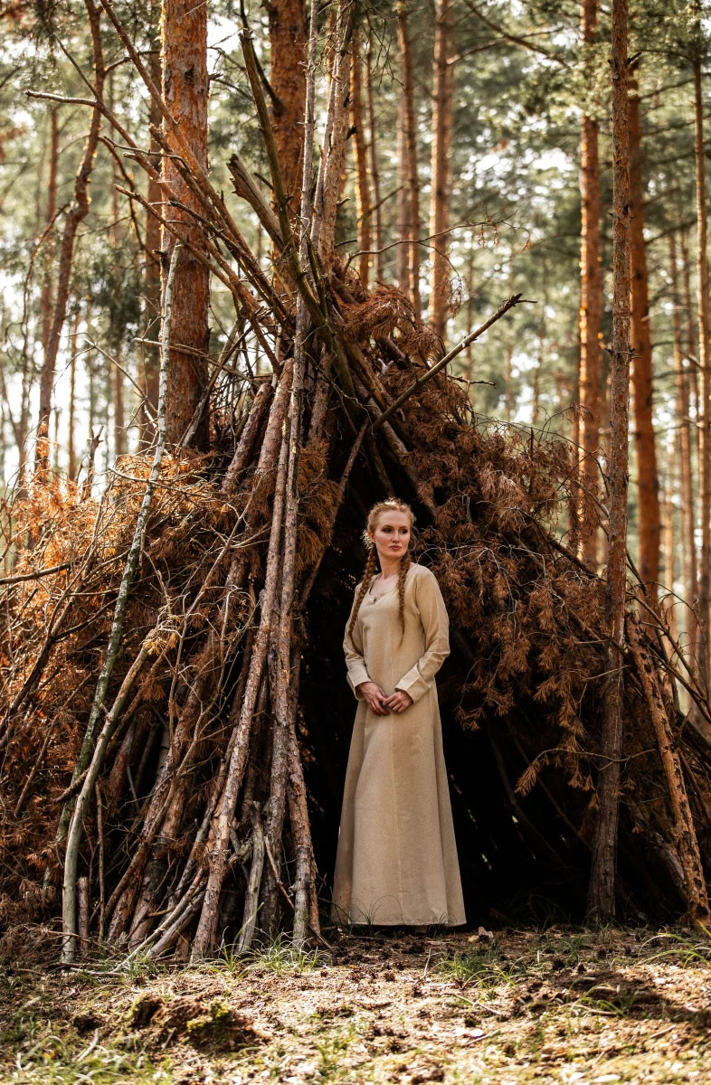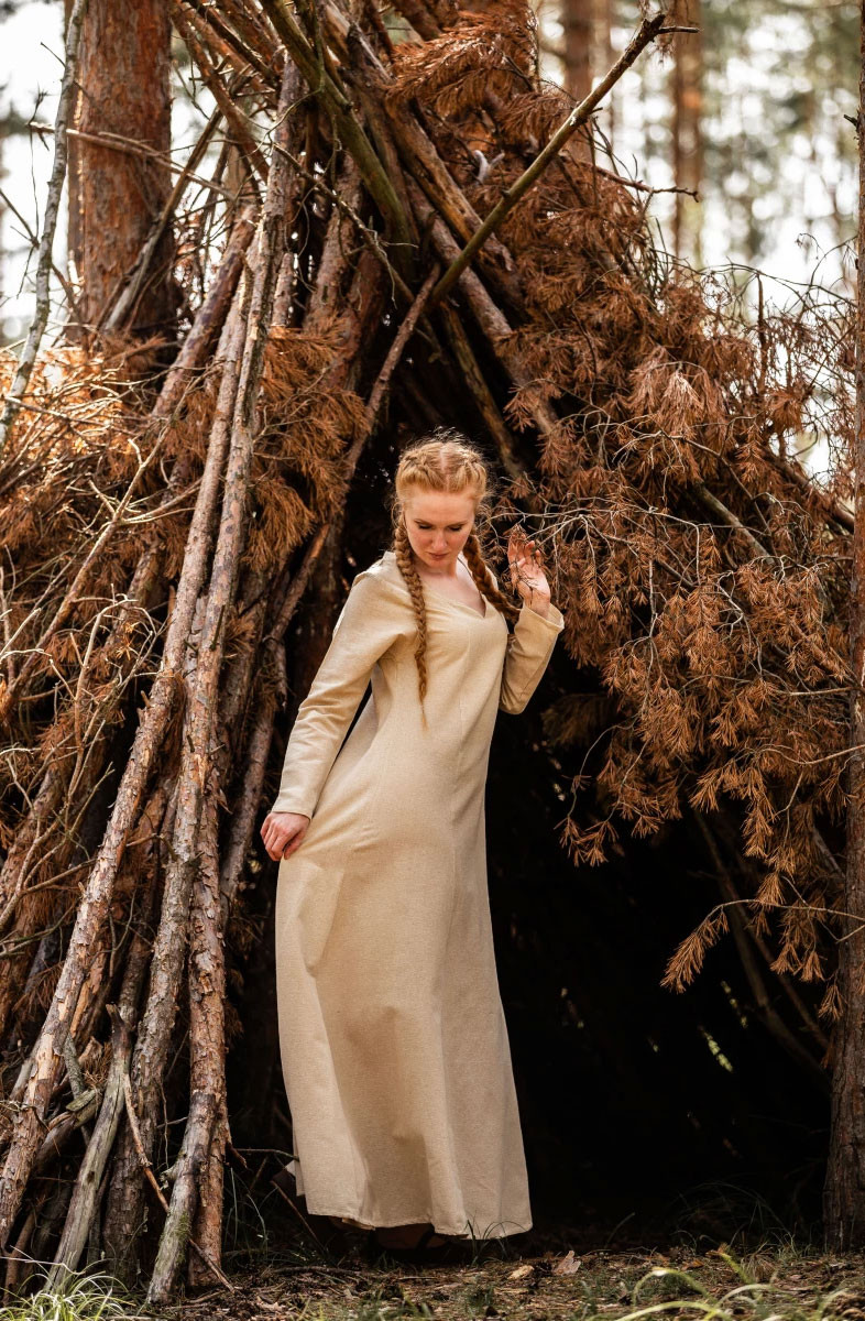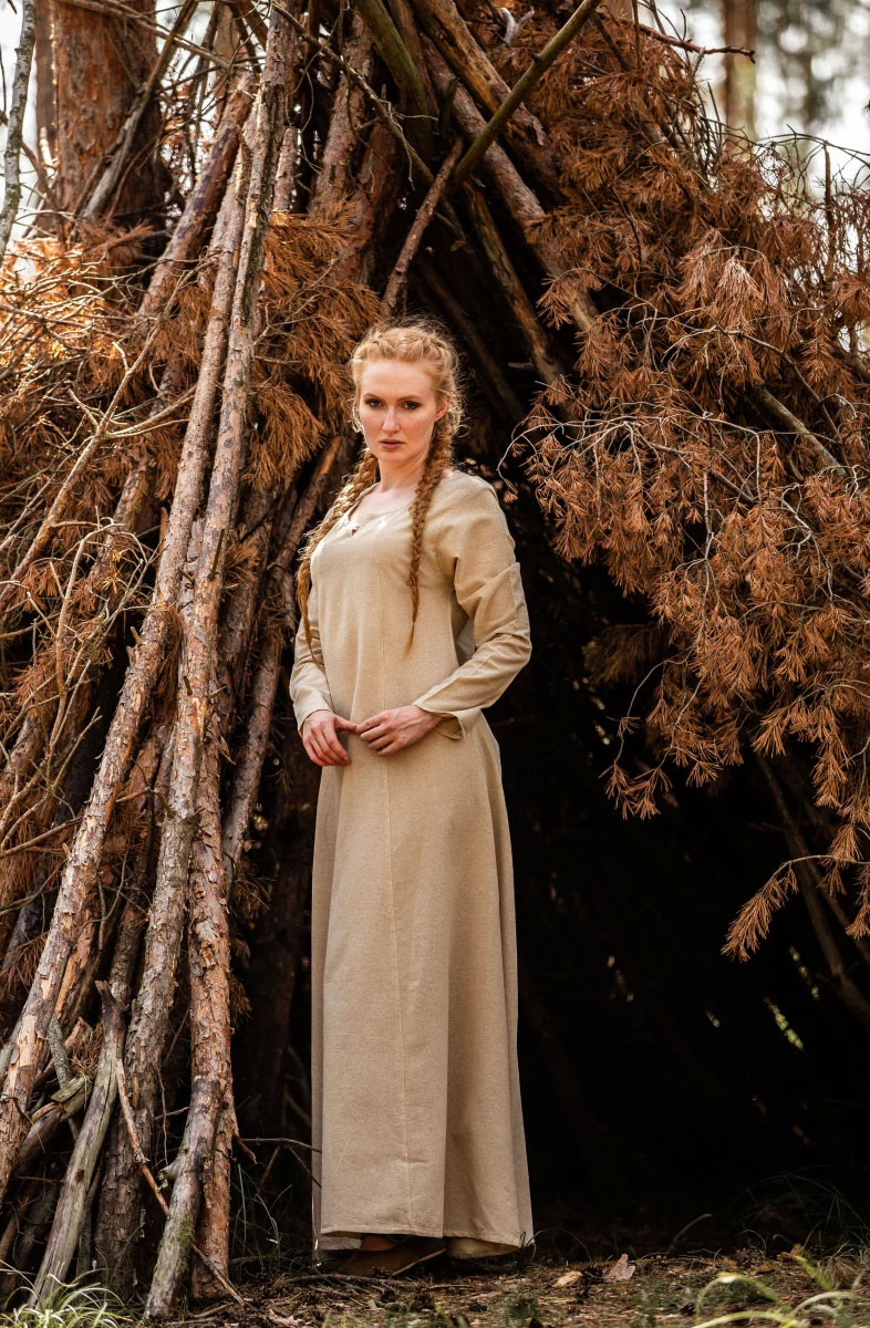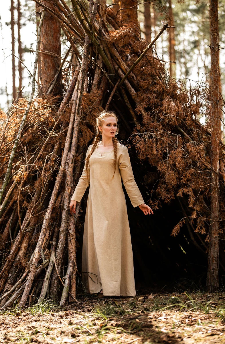 Abito medievale da donna Angie, marrone tabacco-naturale
