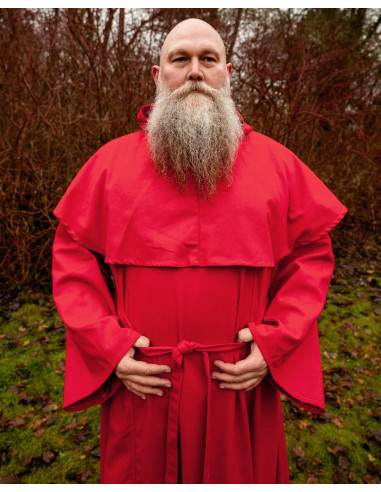 Anche la veste del monaco benedettino si distingue per la sua durevolezza. È fissato sotto il collo con un cordino di cotone attraverso una piastra in pelle liscia, garantendo una vestibilità sicura e confortevole. Inoltre, essendo realizzata in cotone, questa vestaglia è facilmente impermeabilizzata, rendendola la scelta perfetta per qualsiasi avventura all'aria aperta.
