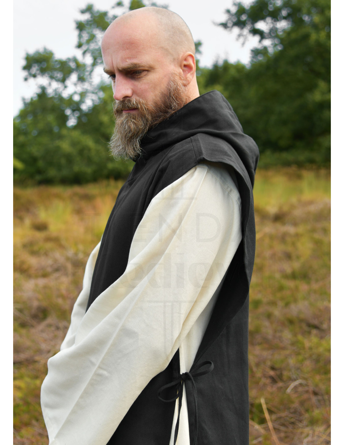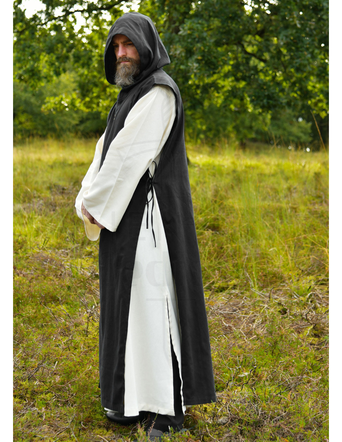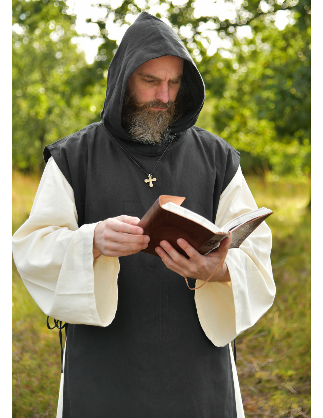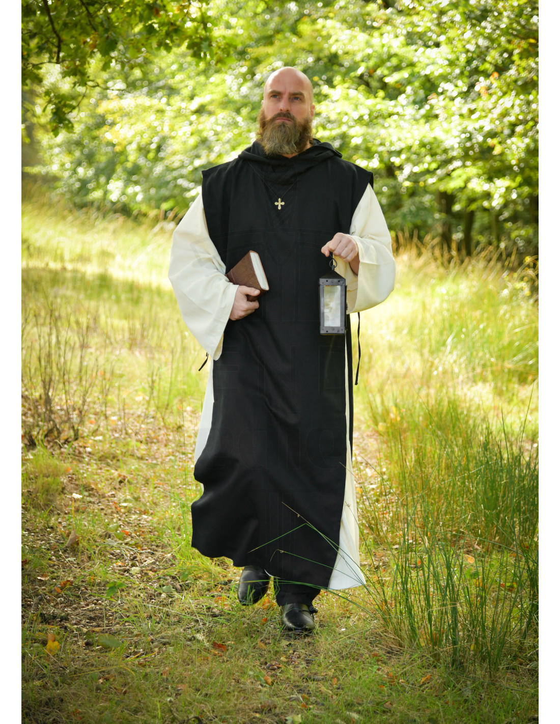 Progettata in due pezzi che possono essere combinati o indossati separatamente, offre una versatilità ideale per ricostruzioni storiche, LARP, cosplay, Halloween o carnevale. La sua estetica richiama l’abbigliamento cistercense, simbolo di comunità e sobrietà che aggiunge autenticità al tuo personaggio.
