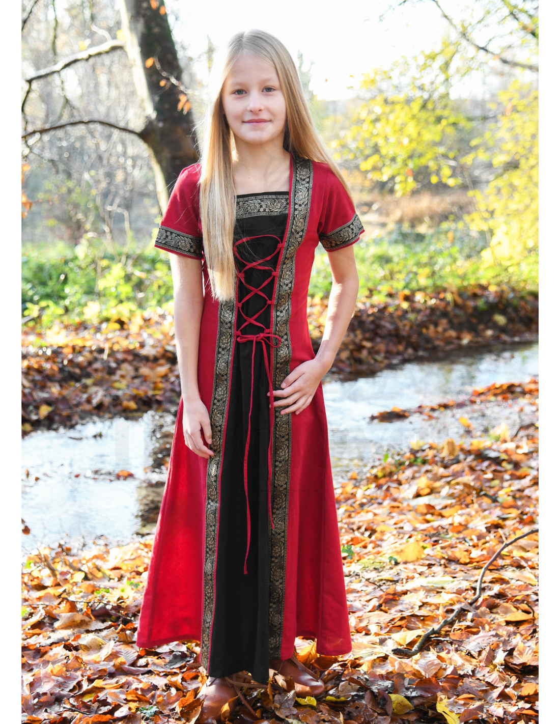 Scopri la magia dell'epoca medievale con l'abito medievale per ragazze 'Leonor' a maniche corte in rosso e nero del prestigioso marchio Battle-Merchant! Questo vestito è perfetto affinché la tua piccola si senta una vera principessa del Medioevo. Di seguito, vi mostriamo tutte le caratteristiche che rendono speciale questo abito: