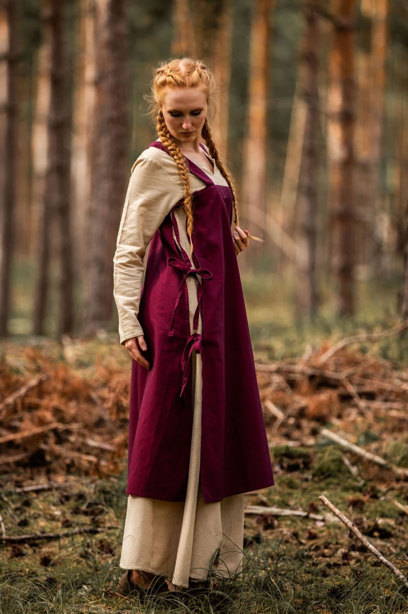 Vestito vichingo con bordi decorativi modello Ingrid, colore borgogna