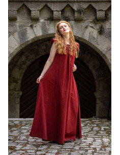 Abito lungo medievale modello Clara, disponibile in rosso. Questo abito smanicato è perfetto per ricreare l'eleganza e il fascino del medioevo. È realizzato al 100% in cotone, che ne garantisce comfort e durata. Inoltre, il suo design curato nei dettagli e il colore vivace lo rendono una scelta ideale per eventi a tema, feste in maschera o semplicemente per aggiungere un tocco di stile unico al tuo guardaroba.
