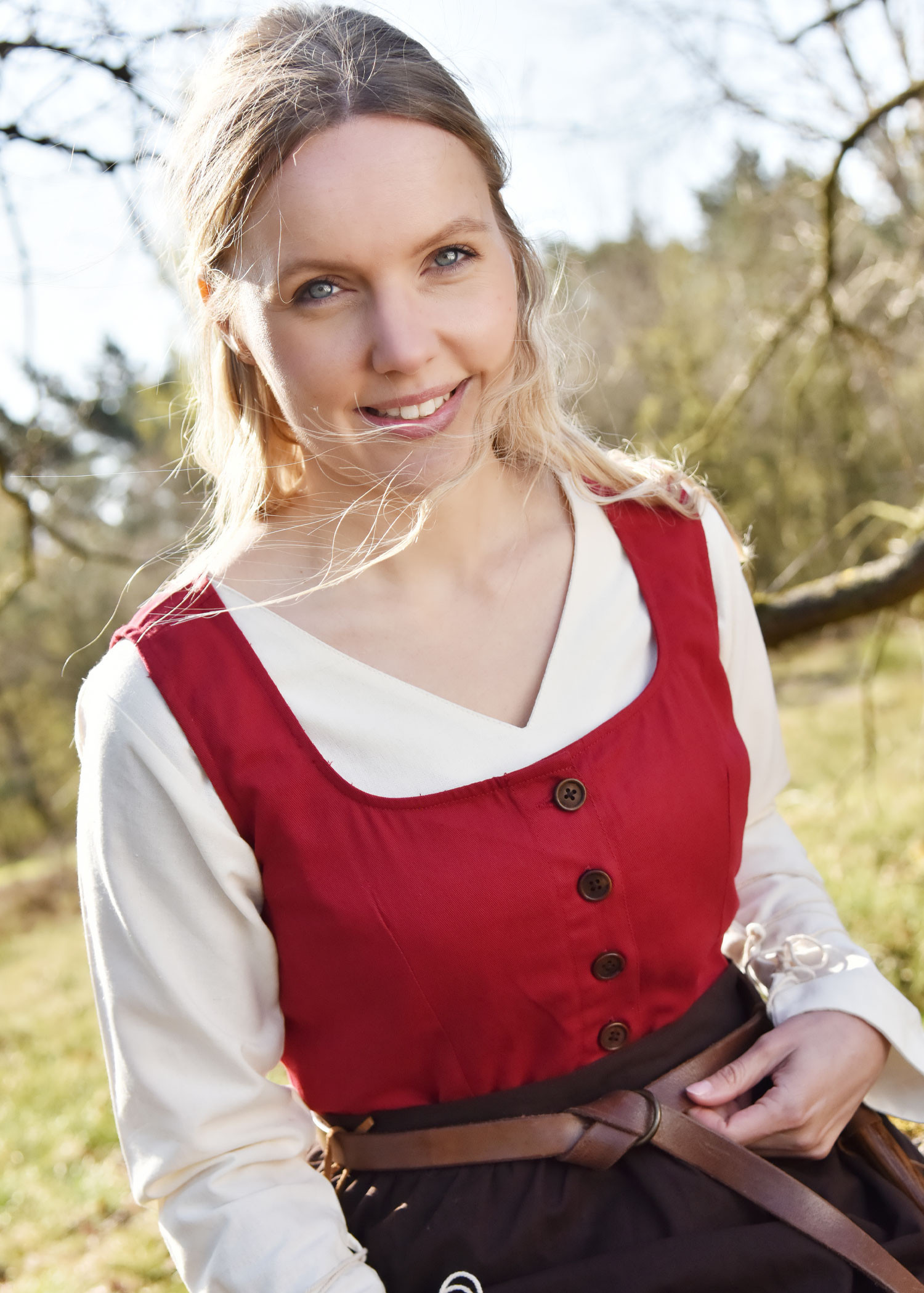 L'abito medievale smanicato rosso Lene è l'accessorio ideale per eventi a tema, feste in maschera o anche per gli amanti della storia che vogliono essere trasportati nei tempi magici del Medioevo. Diventa una vera signora medievale e vai alla ricerca delle tue avventure.