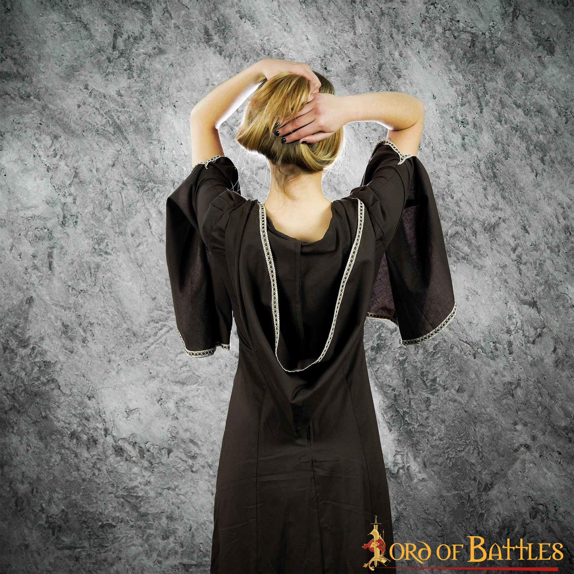 Hai sempre sognato di trasportarti nel medioevo e sembrare una vera dama della nobiltà? L'abito medievale Morgana è perfetto per te. Con il suo design marrone, il cappuccio e le maniche aperte, ti sentirai una vera regina di un'altra epoca.