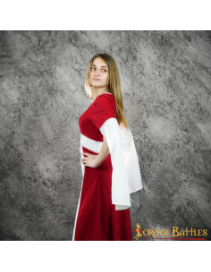 L'abito medievale Inés in camoscio - Rosso è la scelta perfetta per tutte le donne che vogliono apparire eleganti e autentiche nelle feste d'epoca. Questo abito di corte, del rinomato marchio Lord of Battles, è stato progettato pensando alla rievocazione storica e al LARP.