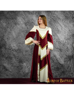 Non importa se lo vuoi utilizzare per Rievocazione Storica o LARP, l'Abito Medievale Noble Catalina con broccati bordeaux ed écru si adatta a qualsiasi contesto e ti farà sentire un vero protagonista del Medioevo.