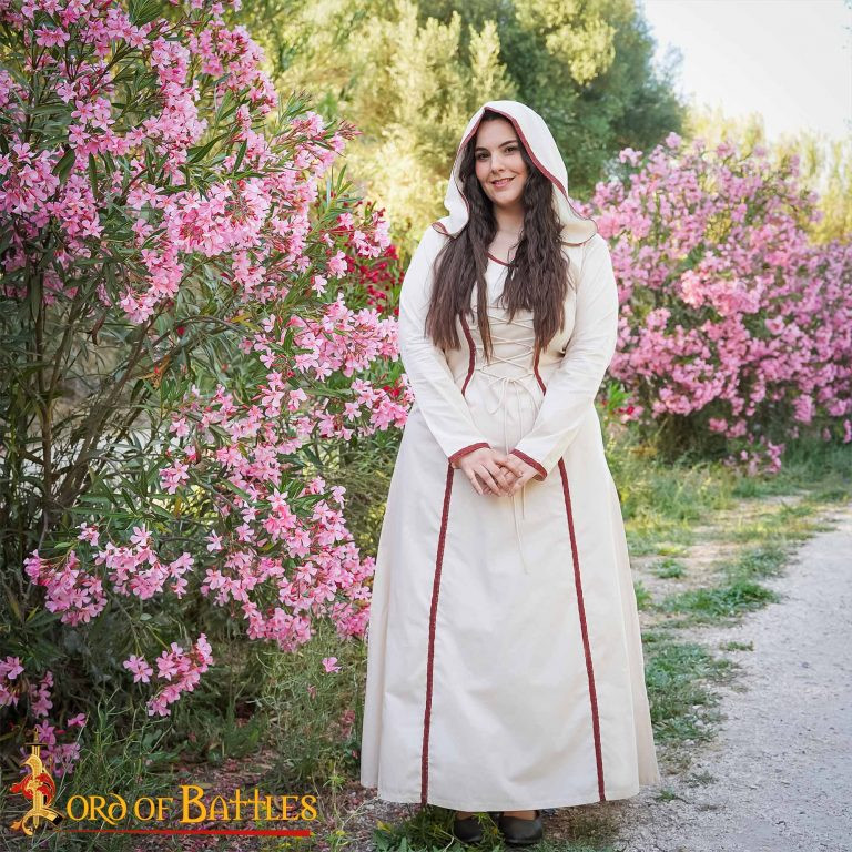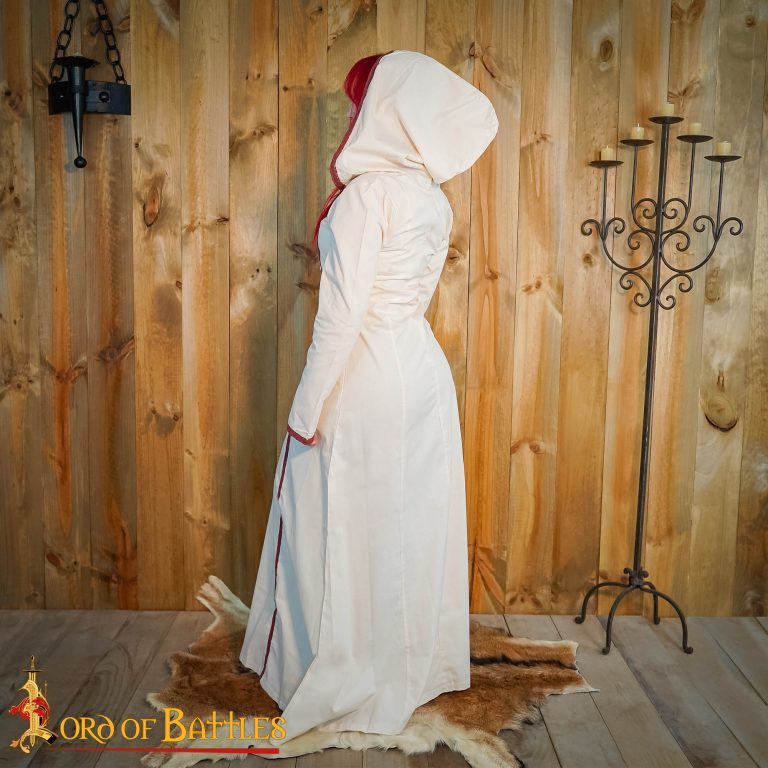 Abito medievale da maga con cappuccio, in cotone