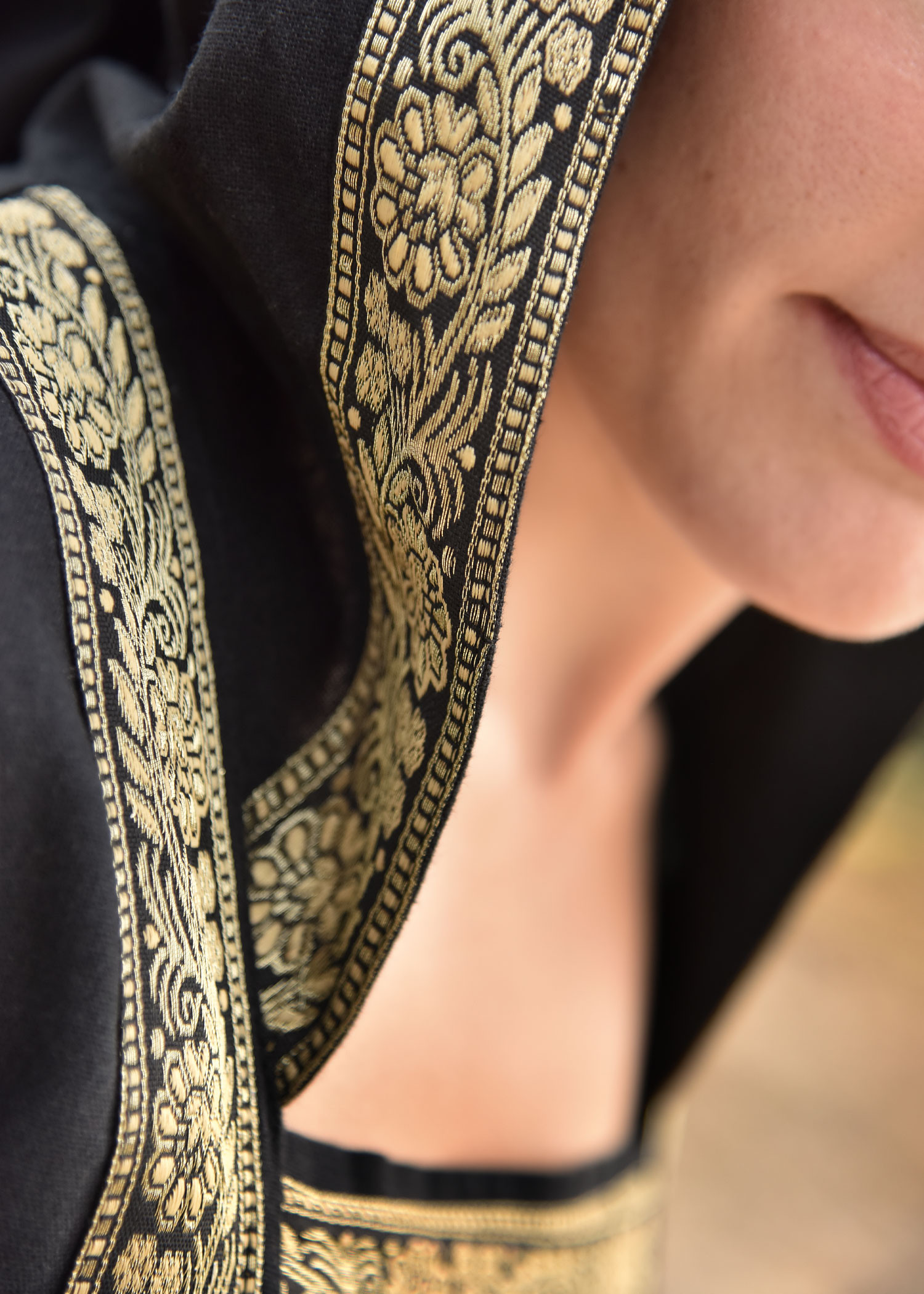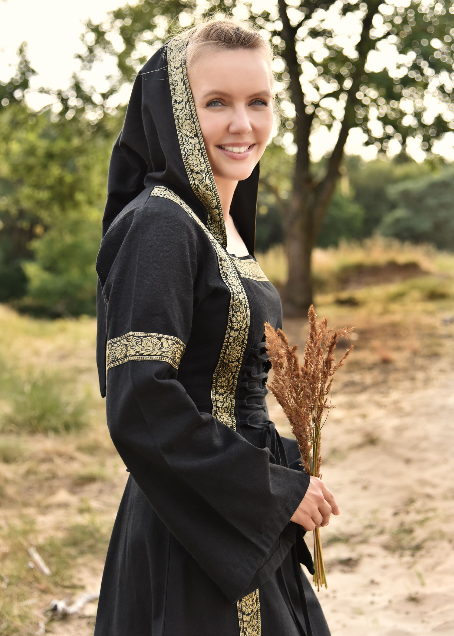 Abito vichingo da donna in lino, modello Helga, colore blu