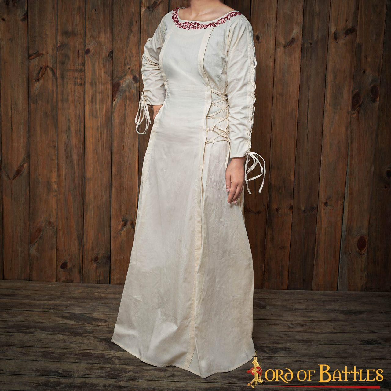 Questo abito da principessa avventuriera medievale in cotone ti immergerà nella magia del Medioevo. Realizzato da Lord of Battles, è un pezzo di alta qualità da non perdere. Rendi tuo questo pezzo di storia e inizia oggi stesso la tua avventura medievale!