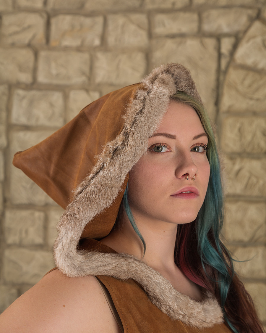 - Cappuccio generoso: il cappuccio dell'abito Freya, con le sue dimensioni generose e il nobile rivestimento in vera pelliccia di coniglio, aggiunge un tocco di nobiltà e fascino. Non solo ti protegge dal vento e dal freddo, ma aggiunge anche un tocco di eleganza al tuo outfit medievale. Distinguiti e mostra il tuo stile con questa felpa con cappuccio unica!