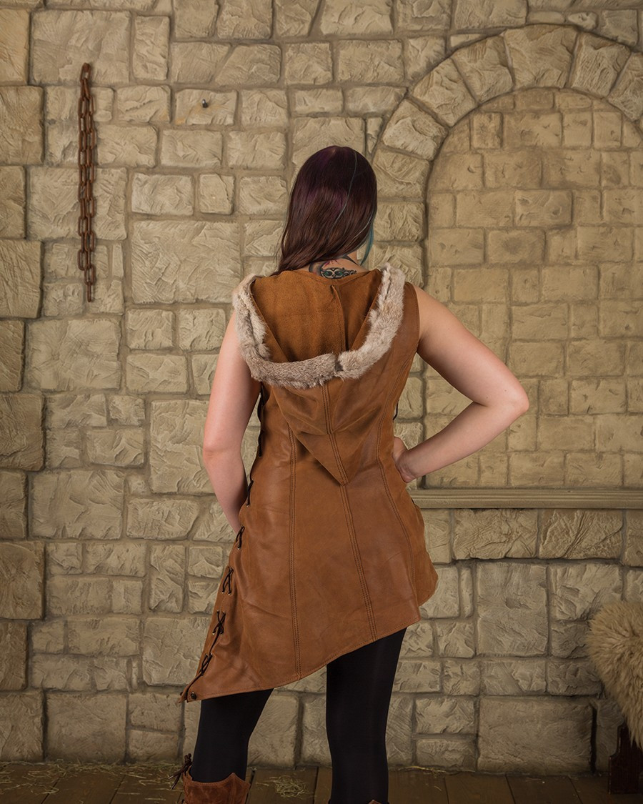 Abito medievale con cappuccio modello Freya, marrone