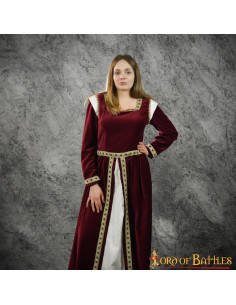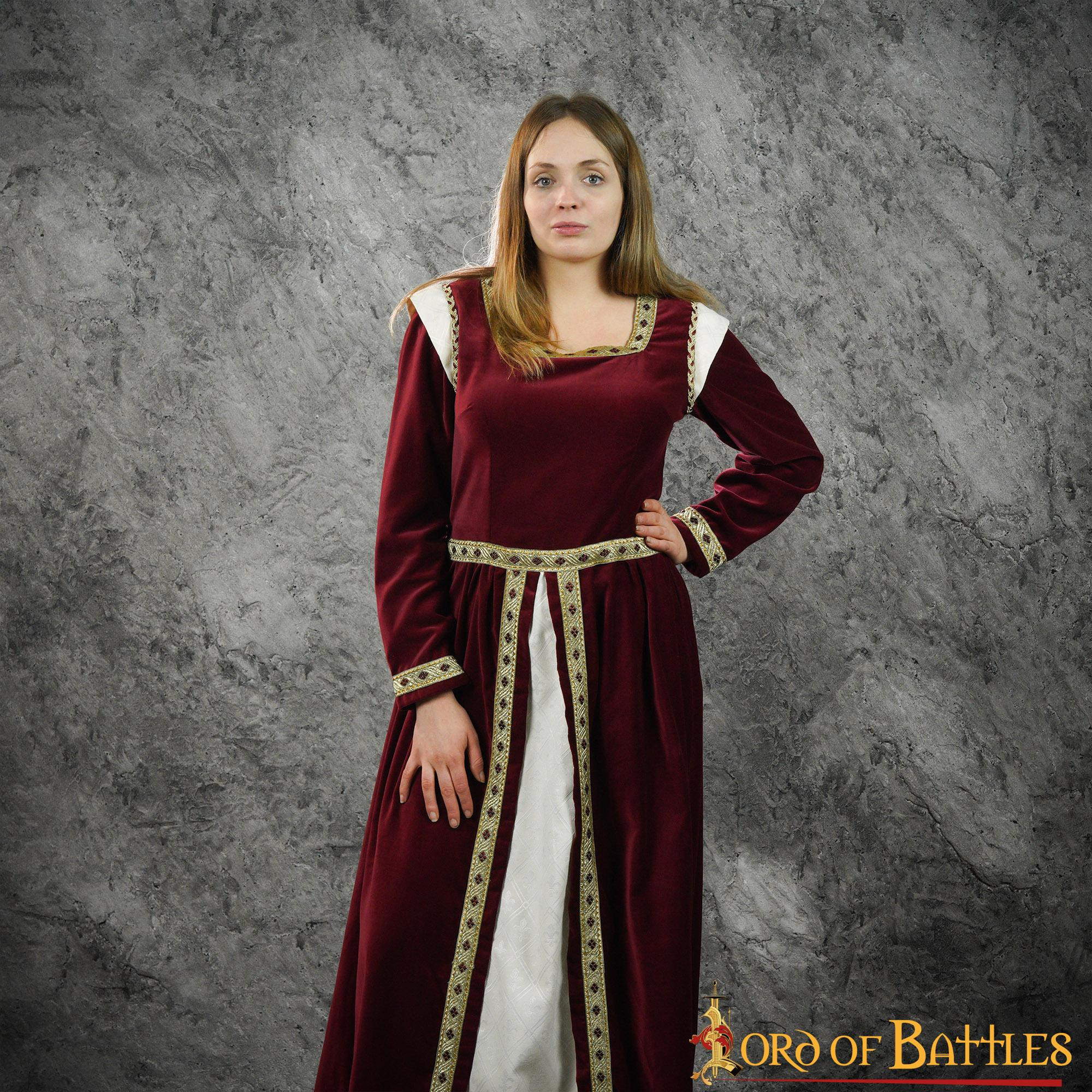 La qualità dei materiali garantisce resistenza e comfort, permettendoti di muoverti liberamente mentre ti immergi nell'atmosfera medievale. Disponibile in una varietà di taglie per adattarsi perfettamente alla tua figura, questo abito ti trasporterà in un'epoca di nobiltà e distinzione.
