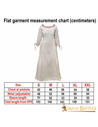Grazie alla sua vita arricciata, questo vestito offre una vestibilità comoda e adattabile a diverse silhouette, permettendoti libertà di movimento durante lunghe giornate alle fiere medievali o incontri di gioco di ruolo dal vivo (LARP). Include un delizioso accessorio decorativo sul petto, che aggiunge un tocco distintivo e unico per far risaltare ulteriormente il tuo abbigliamento.