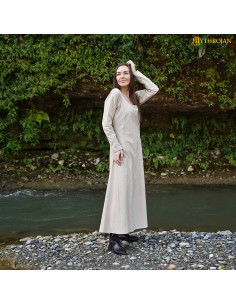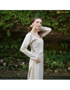 Vestito medievale con collo rotondo modello Astrid, bianco naturale