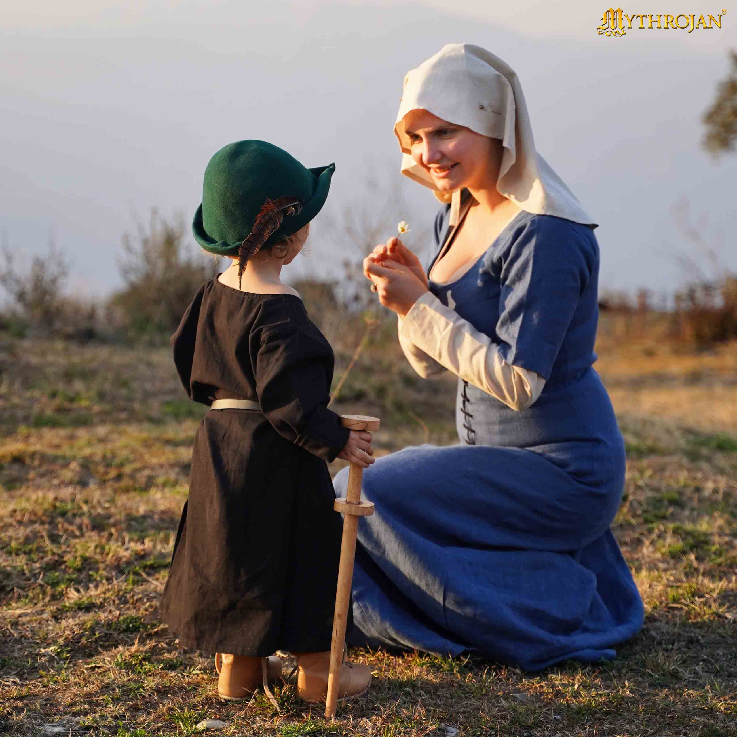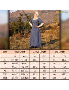 Cerchi un vestito che trasporti la tua immaginazione nell'Europa medievale, specificamente nei secoli XIV e XV? Questo vestito in lino ispirato alle kirtle dell'epoca è perfetto per ottenere quell'aspetto autentico e versatile. Con il suo design lungo e senza cuciture in vita, si adatta facilmente al corpo e si chiude con lacci nella parte anteriore, permettendo una vestibilità personalizzata e confortevole. Le sue maniche corte e il tessuto di lino da 150 gsm in un elegante tono blu offrono una sensazione fresca e naturale, ideale per rievocazioni storiche, eventi LARP o ricostruzioni di personaggi storici.