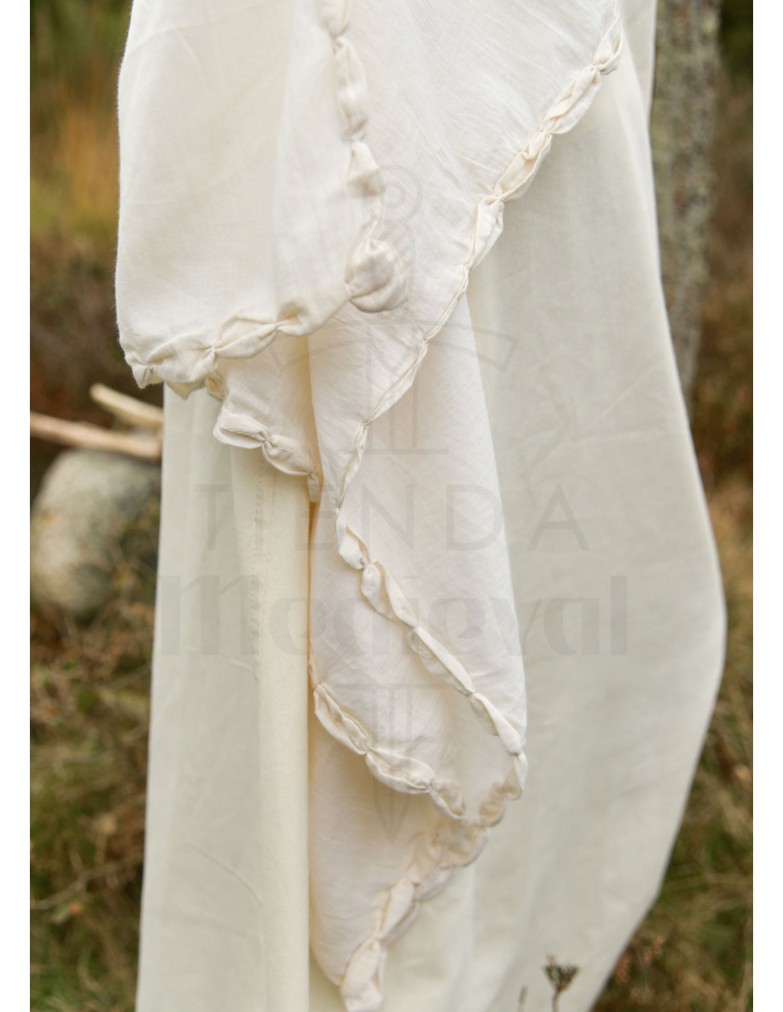 L'Abito medieval Ingrid con lacci sulla schiena, colore naturale, si distingue per il suo scollo posteriore regolabile tramite una elegante cordonatura, che permette di modellare la silhouette secondo il tuo comfort, creando una vita definita senza perdere libertà di movimento. Le pince sul seno assicurano una vestibilità favorevole, mentre il tessuto di cotone offre una sensazione leggera e traspirante, perfetto per indossarlo per tutto il giorno.