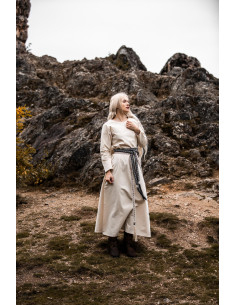 Abito medievale modello Alvilda con Collo Rotondo, naturale