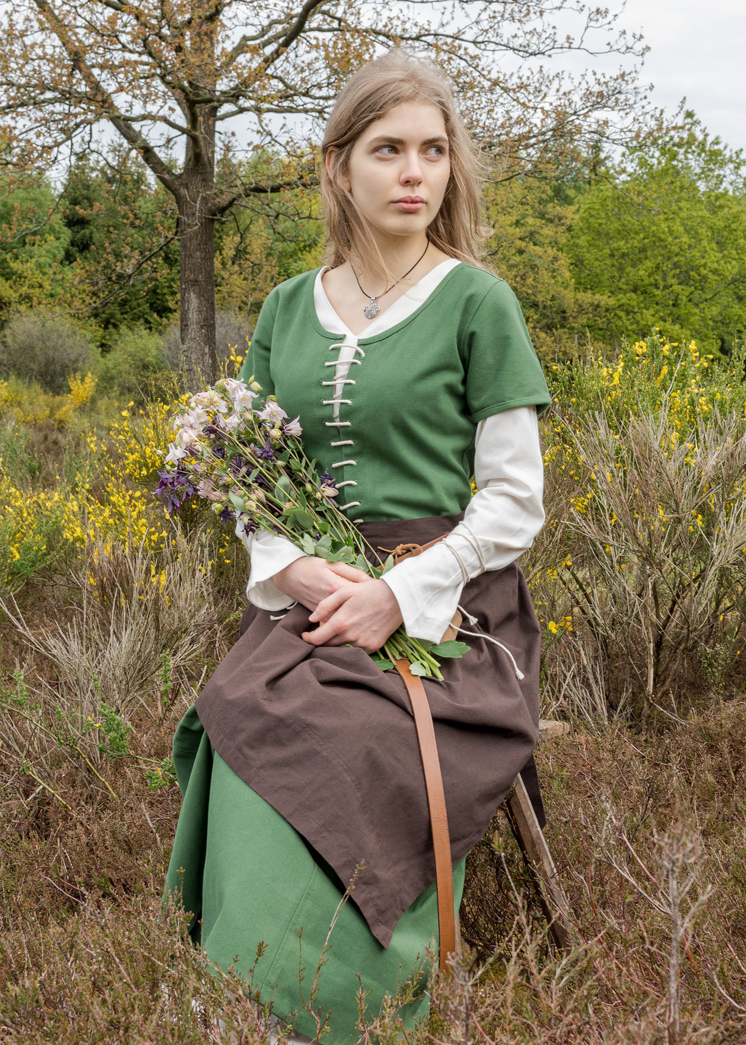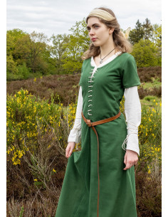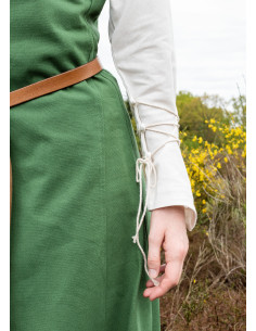 Immagina di adattarlo alla tua figura, esaltando le tue curve con eleganza grazie al cordoncino di cotone nella parte superiore, che si adatta al tuo corpo e al tuo stile in pochi secondi. Ogni volta che lo indossi, senti di portare con te l’ispirazione dei secoli XIII, quando le tuniche iniziarono a rivelare la grazia femminile e la forza di un’epoca ancora viva nella cultura moderna. Il cotone canvas, fresco e naturale, ti offre comfort e resistenza, facendoti sentire abbastanza sicura da conquistare fiere, festival o qualsiasi raduno a tema. Questo vestito non trasforma solo il tuo look, ma aumenta anche la tua fiducia, facendoti risaltare in ogni momento, trasformando ogni evento in un’opportunità per mostrare il tuo carattere e la tua raffinatezza. Con il vestito medievale Ava, la storia diventa il tuo palcoscenico e tu diventi l’indiscussa protagonista dell’epoca che hai sempre desiderato incarnare.