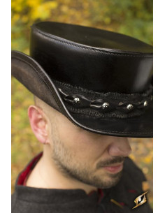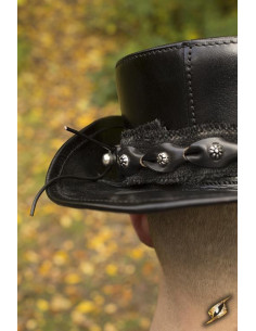 Il cappello a cilindro nero piccolo Epic Armoury è l'accessorio perfetto per chi cerca di aggiungere un tocco di stile ed eleganza al proprio abbigliamento. Realizzato a mano in pelle pieno fiore, questo cappello si distingue per la sua qualità e resistenza.