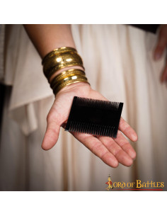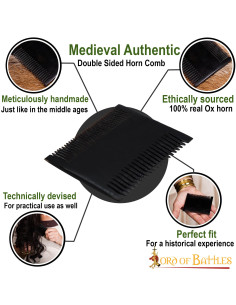 Vuoi sembrare una vera signora medievale? Il pettine medievale in corno di bue da donna è il complemento perfetto per i tuoi accessori. Realizzato a mano in corno di bue di provenienza etica, questo pettine si distingue non solo per il suo design elegante, ma anche per la sua eccezionale durata.