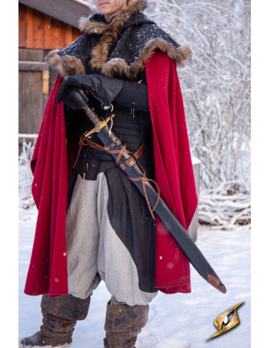 Fodero con cintura per spade in pelle sintetica, colore marrone-nero