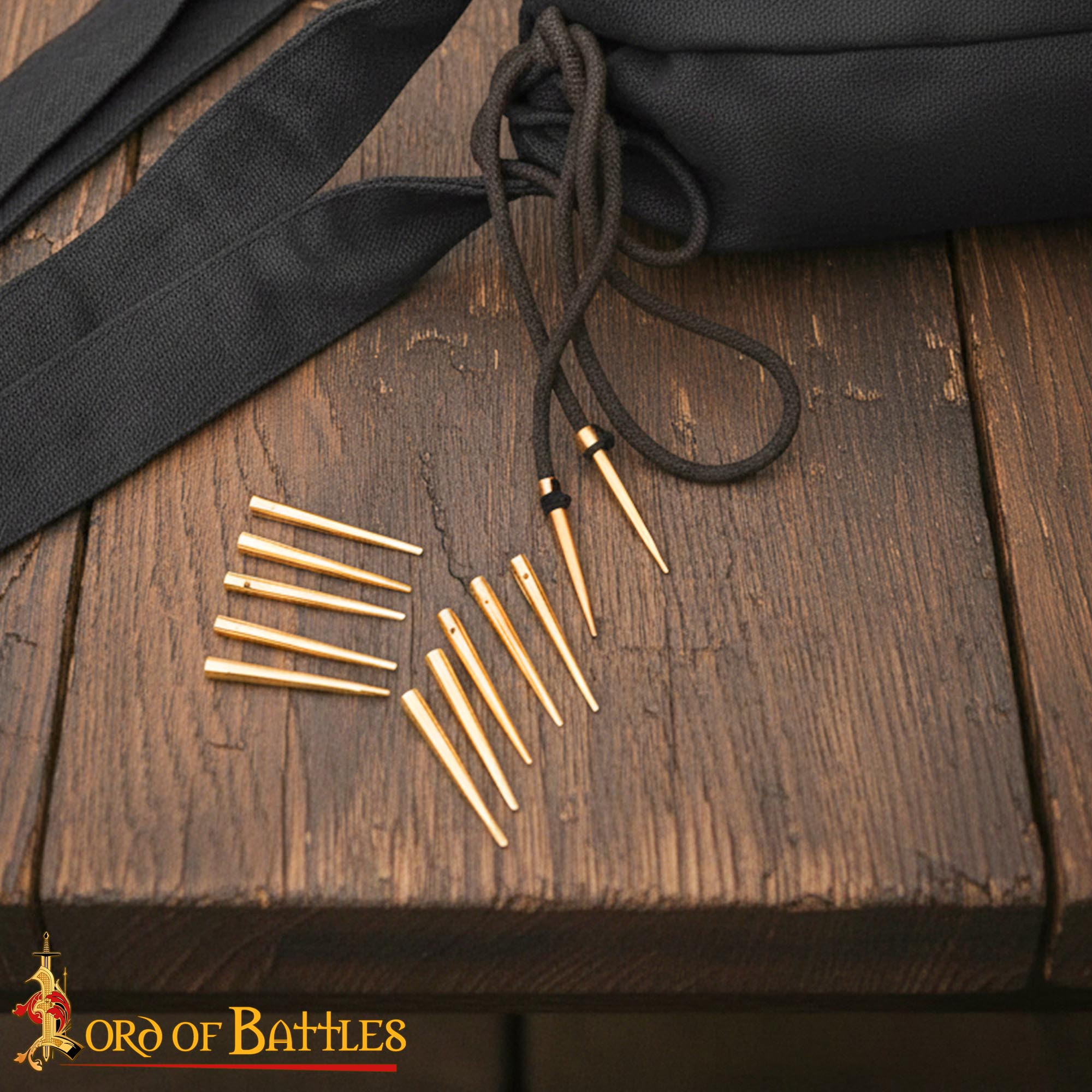 Set di 10 puntali medievali in ottone con punte arrotondate (3,7 cm.)