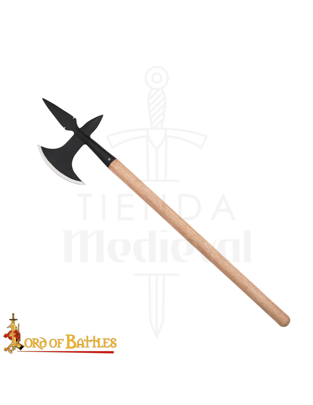 Il manico in legno chiaro è stato selezionato per il suo tatto e flessibilità, affinché ogni movimento si senta naturale e sicuro. L'unione tra testa e asta, rifinita con un incastro solido, crea un pezzo stabile che facilita manovre fluide, ideale per interpretazioni dal vivo, eventi LARP e presentazioni teatrali.