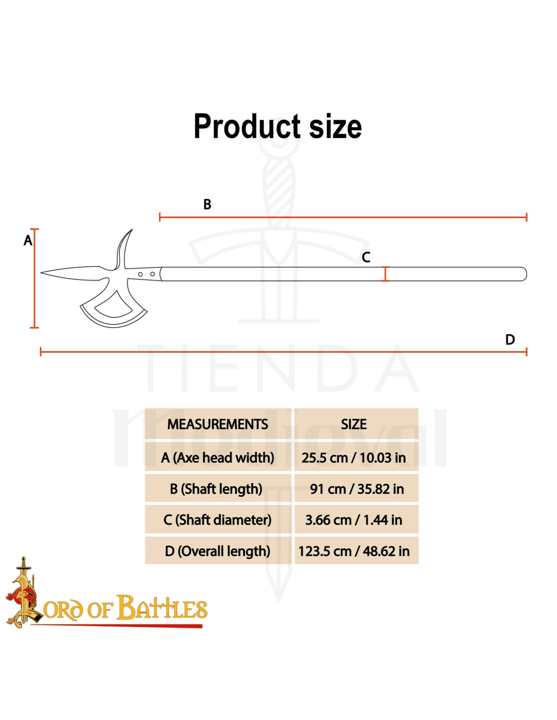 Questo pezzo fonde design funzionale e estetica cerimoniale, offrendo un'esperienza realistica per ricreazioni, teatro o mostre. La testa in acciaio al carbonio, forgiata a mano, non solo garantisce una finitura fedele ai pezzi d'epoca, ma assicura anche una sensazione d'uso che rispetta la dinamica delle armi d'asta originali, consentendo movimenti fluidi e gesti scenici con risposta equilibrata.