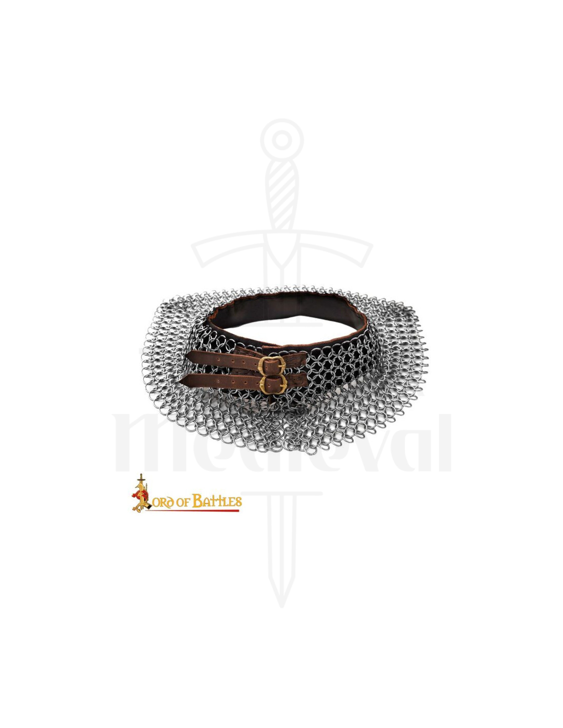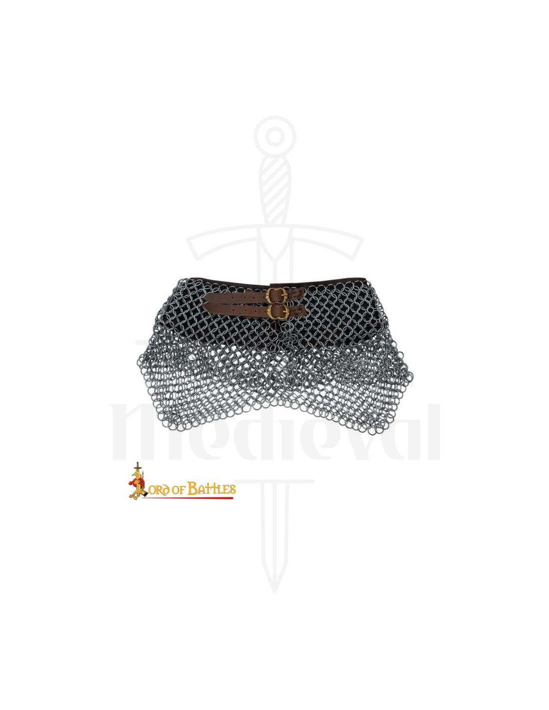 Se stai cercando di acquistare una Gorgiera a rete medievale in acciaio con pelle per ricreazione storica, LARP o allenamento di arti marziali storiche, questo pezzo si distingue per offrire un equilibrio tra protezione visivamente fedele e usabilità pratica. Il suo trattamento naturale con finitura protettiva facilita la manutenzione e conserva quell'aspetto autentico che completa qualsiasi ensemble d'epoca.