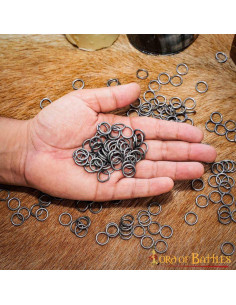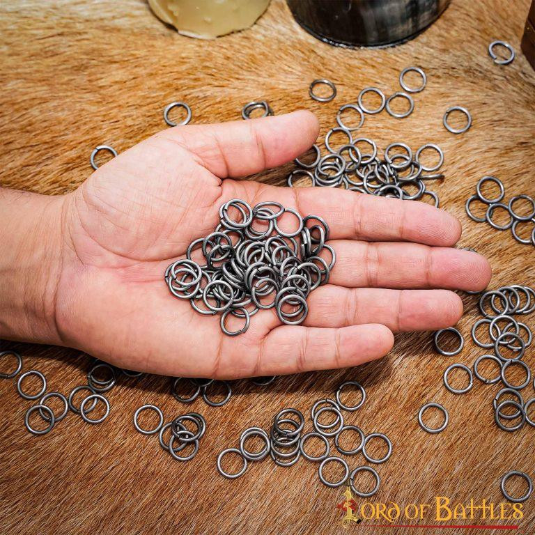 Con un calibro 16 e un diametro di 9 mm ciascuno, questi anelli sono perfetti per creare o riparare la tua cotta di maglia nel modo più duraturo e affidabile. Il suo materiale in acciaio dolce garantisce una resistenza eccezionale e una lunga durata, offrendoti una protezione affidabile durante le tue battaglie.