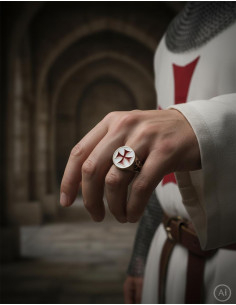 Una delle caratteristiche più notevoli di questo anello è il design smaltato della Croce Templare, che gli conferisce un tocco distintivo e simbolico. La Croce Templare, simbolo dei Cavalieri Templari, rappresenta il coraggio, la lealtà e la protezione divina.