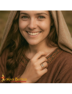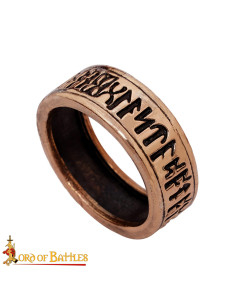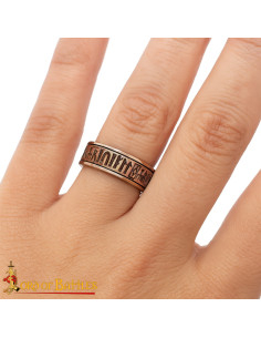 La banda larga e la silhouette ferma trasmettono presenza senza rinunciare al comfort, grazie a una faccia interna liscia e trattata per rendere l'uso comodo anche durante lunghe giornate. Il contorno inciso in alta rilievo percorre tutto l'anello con frasi di taglio devozionale e araldico, evocando la tradizione monastica e la calligrafia gotica dell'Europa occidentale medievale.
