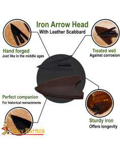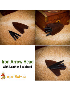 Punta di freccia medievale, coda di rondine, con fodero