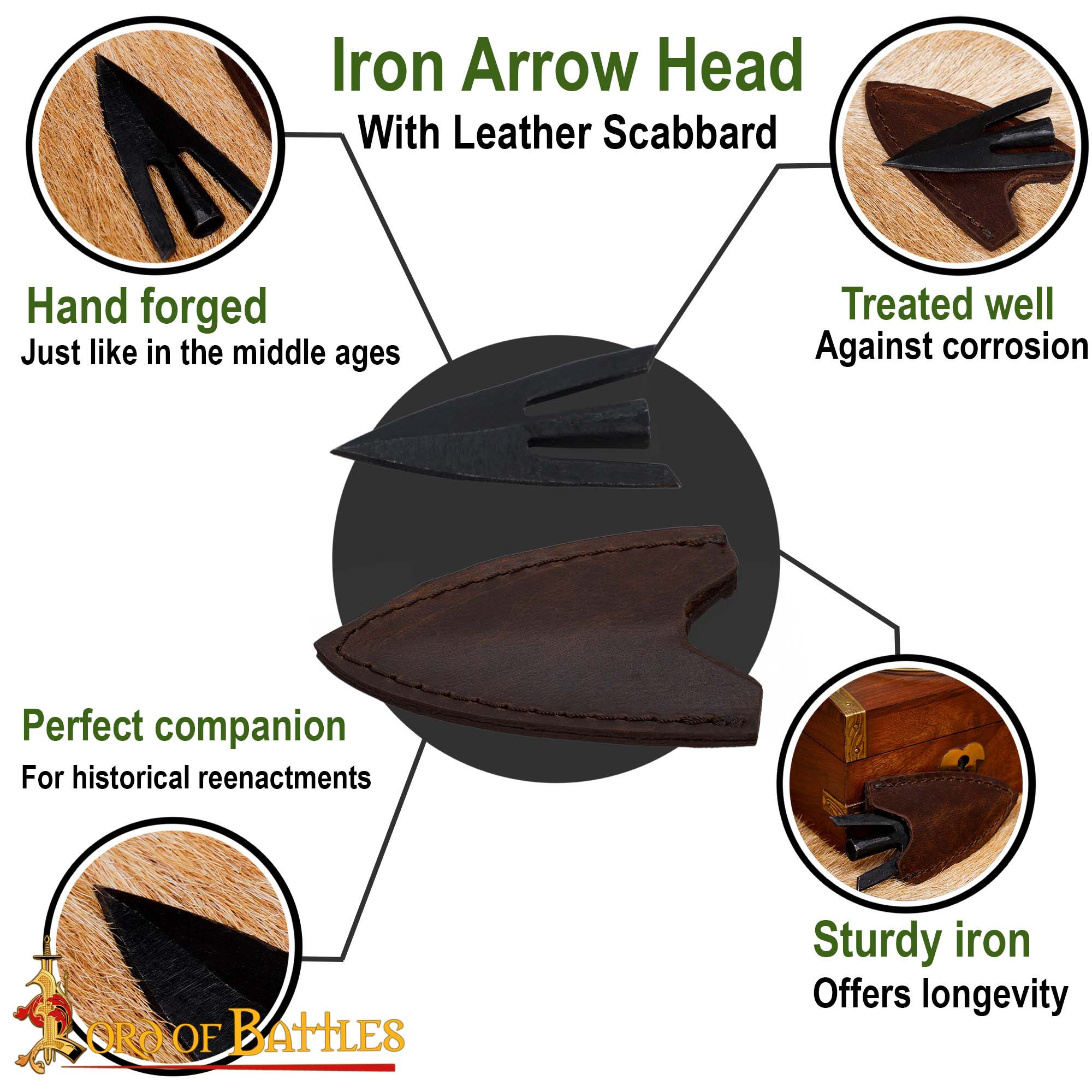 Acquista questo gioiello storico, perfetto per ricreazioni medievali, amanti della caccia o collezionisti appassionati. Questa punta di freccia non è solo uno strumento formidabile, ma anche un pezzo di storia che parla di vittorie, strategie e conquiste di epoche passate. Portala con te e dimostra che tradizione e funzionalità possono andare di pari passo. Scegli di essere parte di questa storia vivente e fai in modo che ogni colpo conti con la punta di freccia medievale di Lord of Battles.