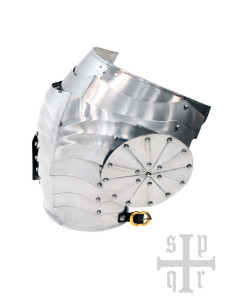 La sua lunghezza di 29 cm. assicura un'adeguata protezione per le spalle, mentre il suo materiale in acciaio da 1,5 mm. fornisce una durata eccezionale per resistere ai rigori del combattimento e garantirne la longevità.