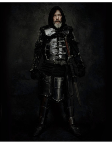 Armatura medievale modello Fafnir in cuoio e acciaio, finitura nera