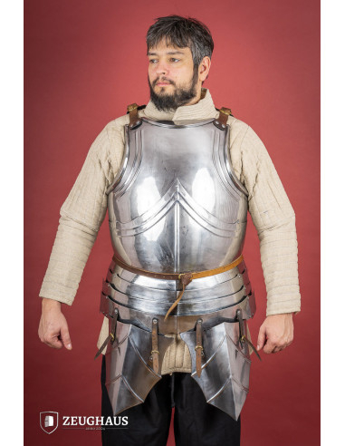 Set bracciali e schinieri medievali in acciaio modello Adam, finitura lucida