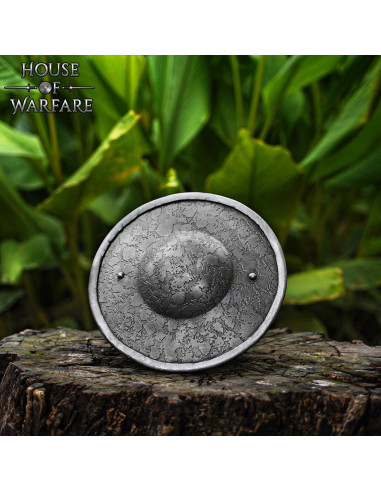 Scudo medieval rotondo in acciaio, finitura antica