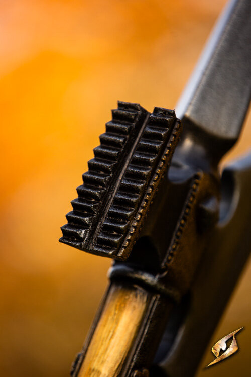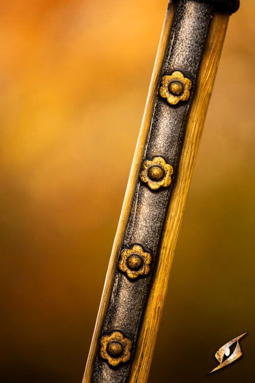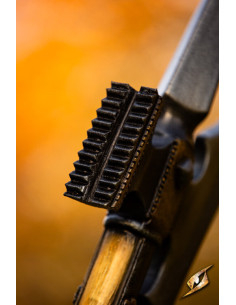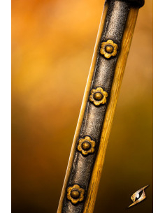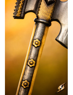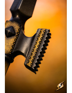 Realizzato in schiuma leggera e con un nucleo in fibra di vetro rinforzata, questo stendardo è robusto e maneggevole, garantendo che rimanga saldo in qualsiasi confronto. La schiuma è rivestita con lattice dipinto, imitante la texture del legno naturale e gli accenti metallici che conferiscono un'aria di autenticità medievale. Gli angoli affilati e il design audace creano una presenza formidabile, assicurando che il tuo stendardo sia al centro dell'attenzione.
