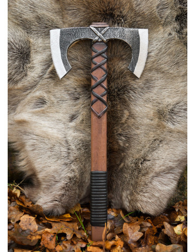 Jorvak non è solo un accessorio, è compagna di avventura: la sua estetica rustica e i dettagli sottili d'uso simulano una vita di battaglie, rafforzando qualsiasi personaggio, da un mercenario incallito a una shield maiden con determinazione. Se sei interessato ad acquistare l'Ascia vichinga doppia per LARP, modello Jorvak, la troverai progettata per integrarsi con costumi e scene senza perdere credibilità.