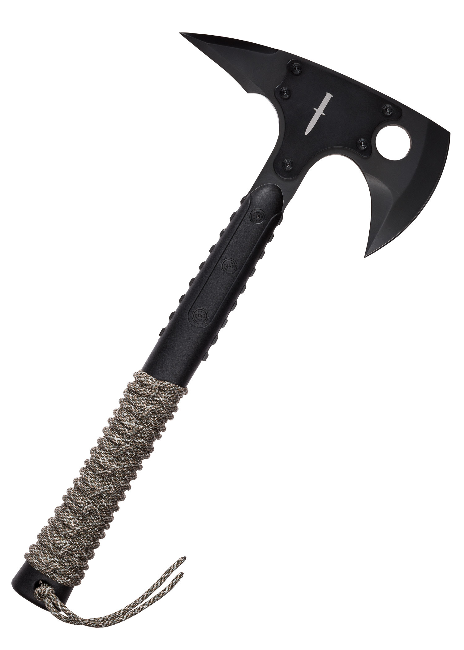 - Manico ergonomico e antiscivolo: il manico rinforzato con fibra di vetro ottimizza una presa sicura e antiscivolo, consentendoti di utilizzare l'ascia in totale sicurezza in ogni situazione. Inoltre, è avvolto con un pratico paracord, fornendo non solo una presa extra ma anche uno strumento utile in situazioni di emergenza.