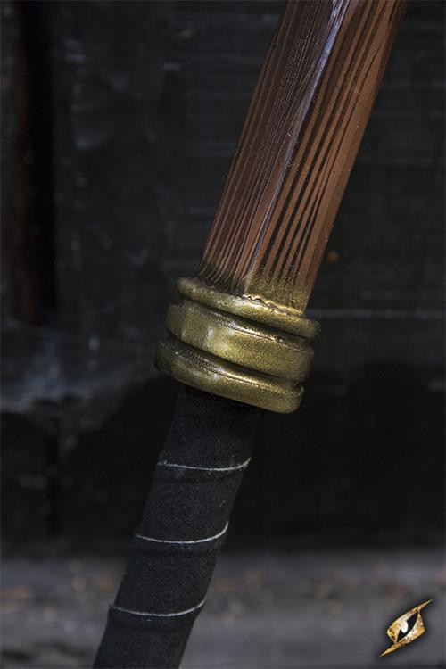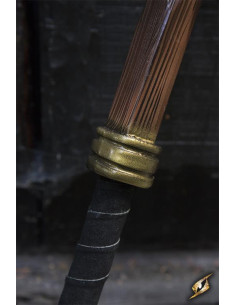 La lunghezza totale dell'arma è di 80 cm, con un pomo scolpito e un'impugnatura rivestita in pelle spaccata di 25 cm, che fornisce una presa salda e confortevole per l'utente. Inoltre, il suo peso di 400 grammi consente una manovrabilità agile e precisa durante il combattimento.