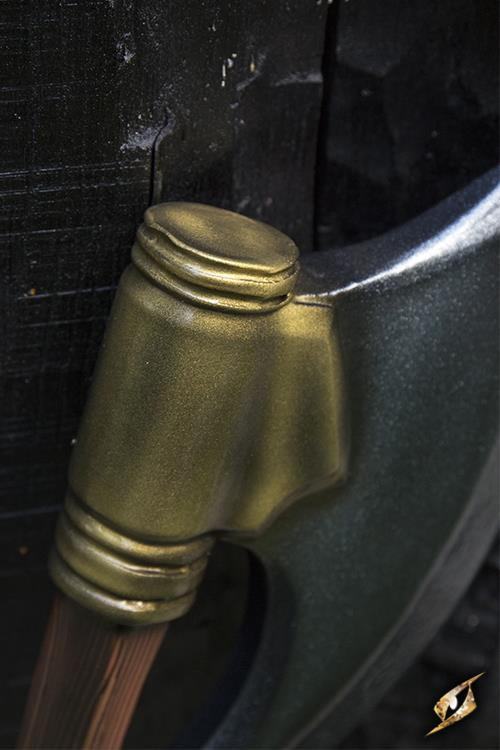 L'ascia da battaglia di Epic Armoury è l'arma perfetta per i guerrieri nani del nord. Con una solida testa a forma di mezzaluna che si incurva nel manico in legno, quest'ascia è progettata per essere altamente efficace nel combattimento ravvicinato. La sua testa presenta un bordo curvo lungo 36 cm e la sua larghezza di 16 cm è fissata al manico da una grande placca d'oro, garantendo la sua forza e durata sul campo di battaglia.