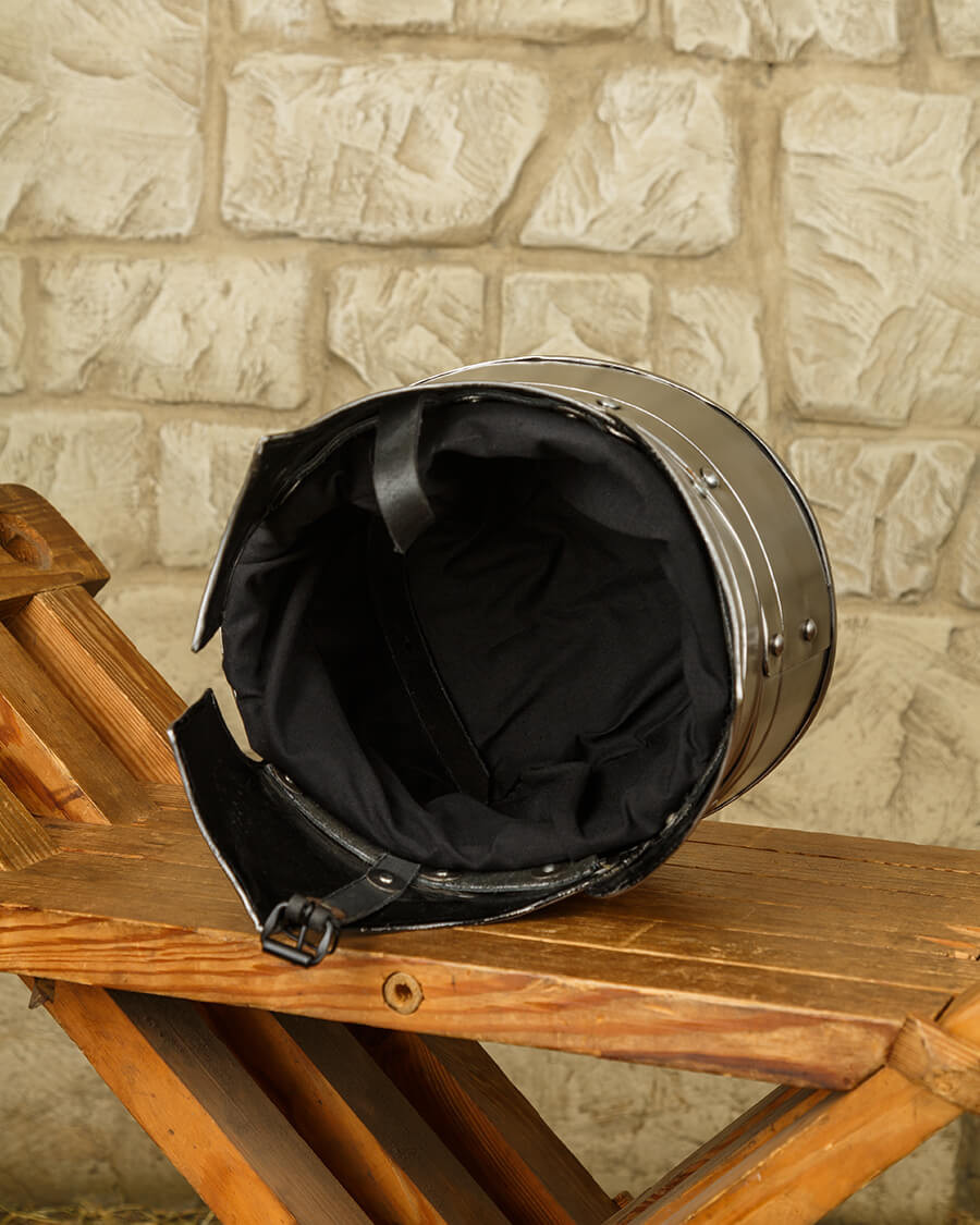 Bacinella medievale con visiera removibile, XV secolo