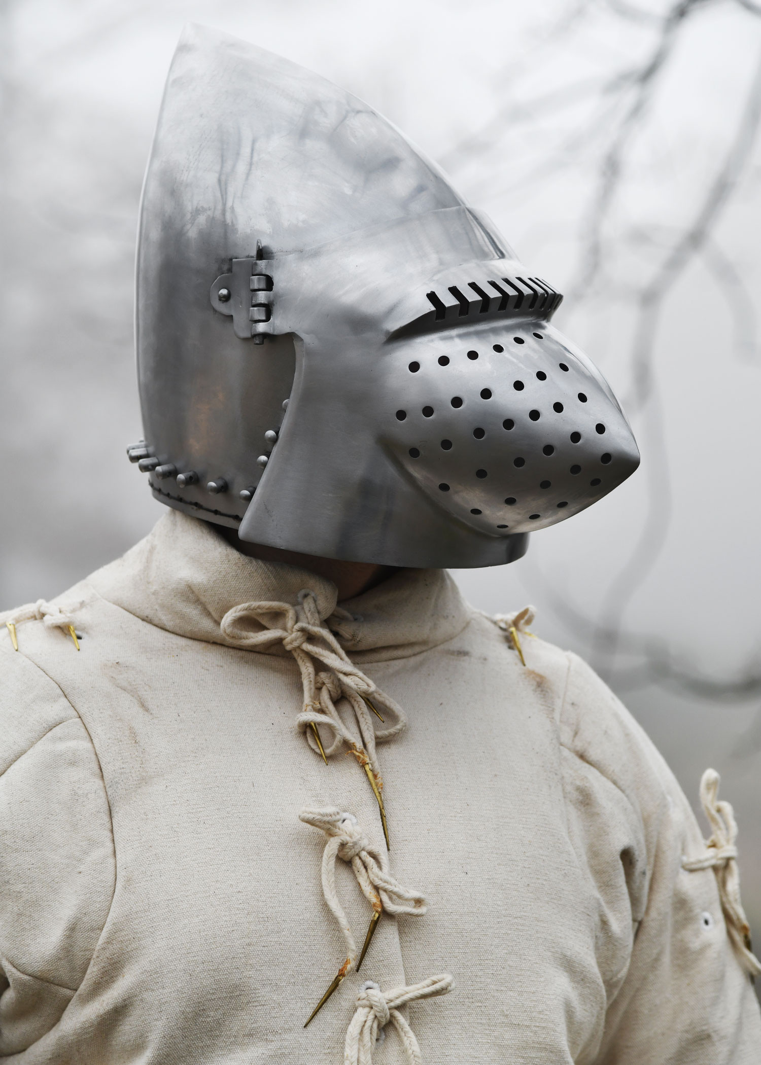 Bacino da cavaliere con visiera del XIV secolo (calibro 16)