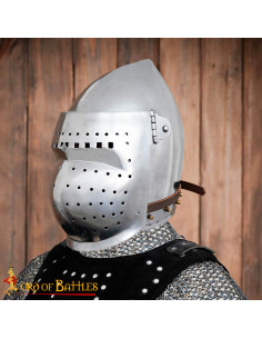 Barbuta medievale con visiera completa Secolo XIV, calibro 16