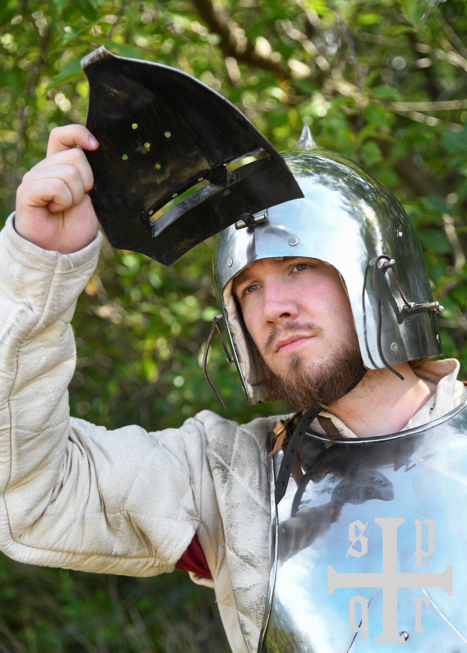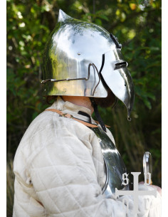 Casco con muso di levriero del XIV secolo, acciaio 2 mm.