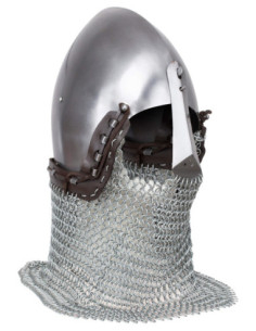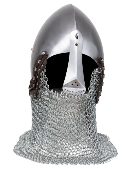 Questo modello evoca lo spirito dei caschi del XIV secolo, utilizzati da cavalieri e soldati, e cattura quella miscela di presenza e funzionalità che tanto attrae gli appassionati di ricreazione storica, cinema e collezionismo. Se stai cercando un pezzo dall'aspetto reale e dalla gestione pratica, acquistare il Bacinete medieval in acciaio modello Alwin, finitura lucida ti consente di aggiungere al tuo equipaggiamento un elemento versatile e fedele allo spirito dell'epoca.
