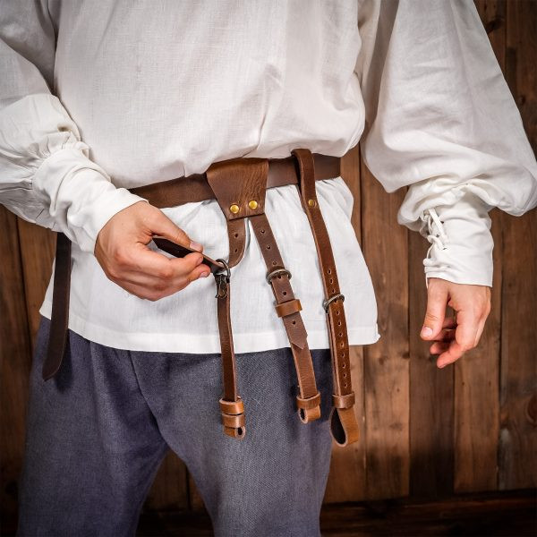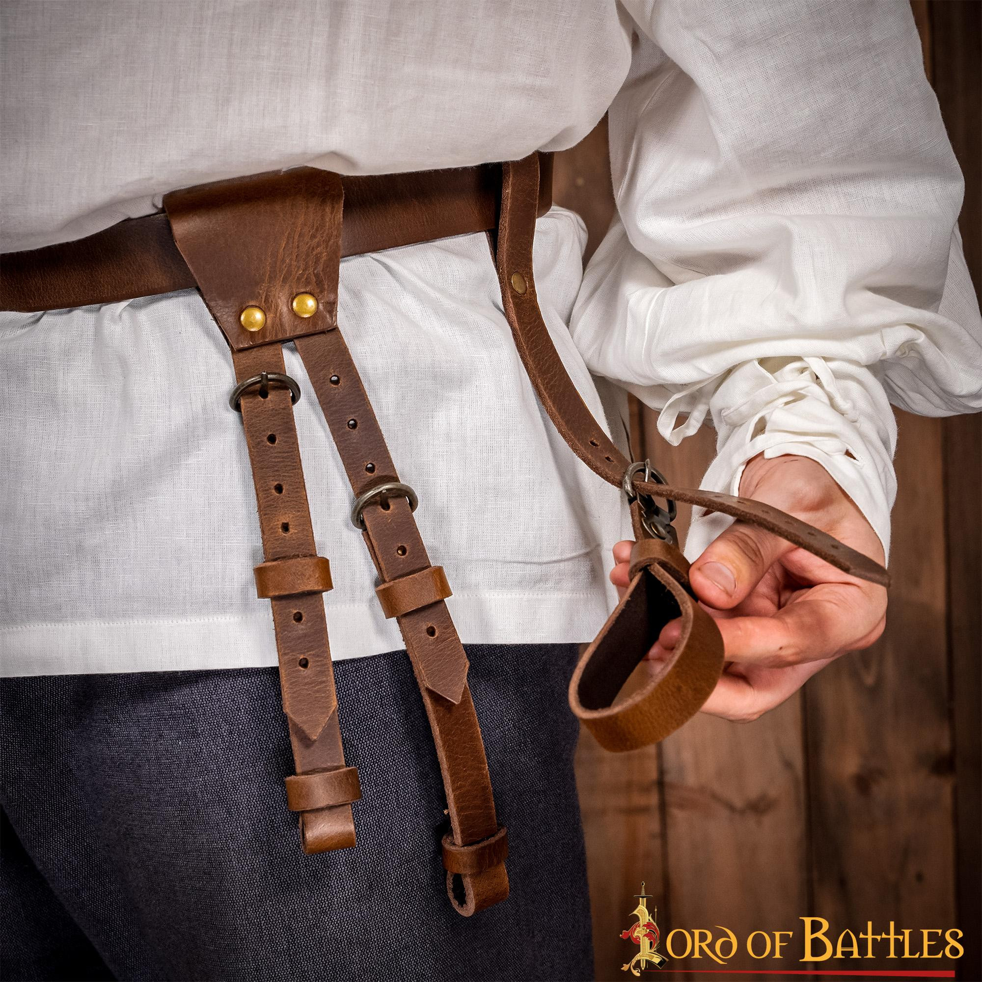 Tahalí per spada composto da 3 cinture di cuoio. Questo set di cintura appendiabiti per spada è meticolosamente realizzato dai nostri abili artigiani utilizzando niente di meno che VERA PELLE di altissima qualità.